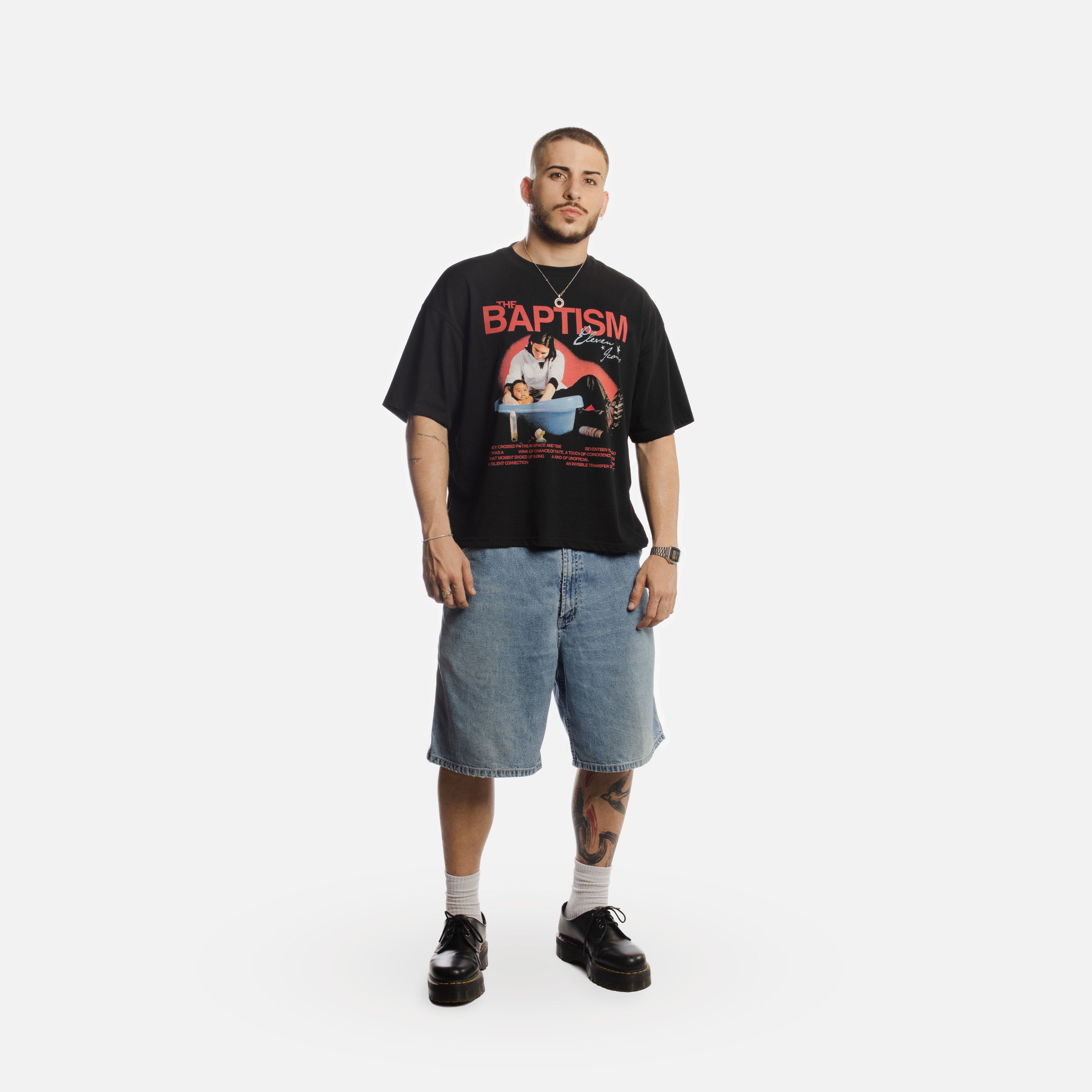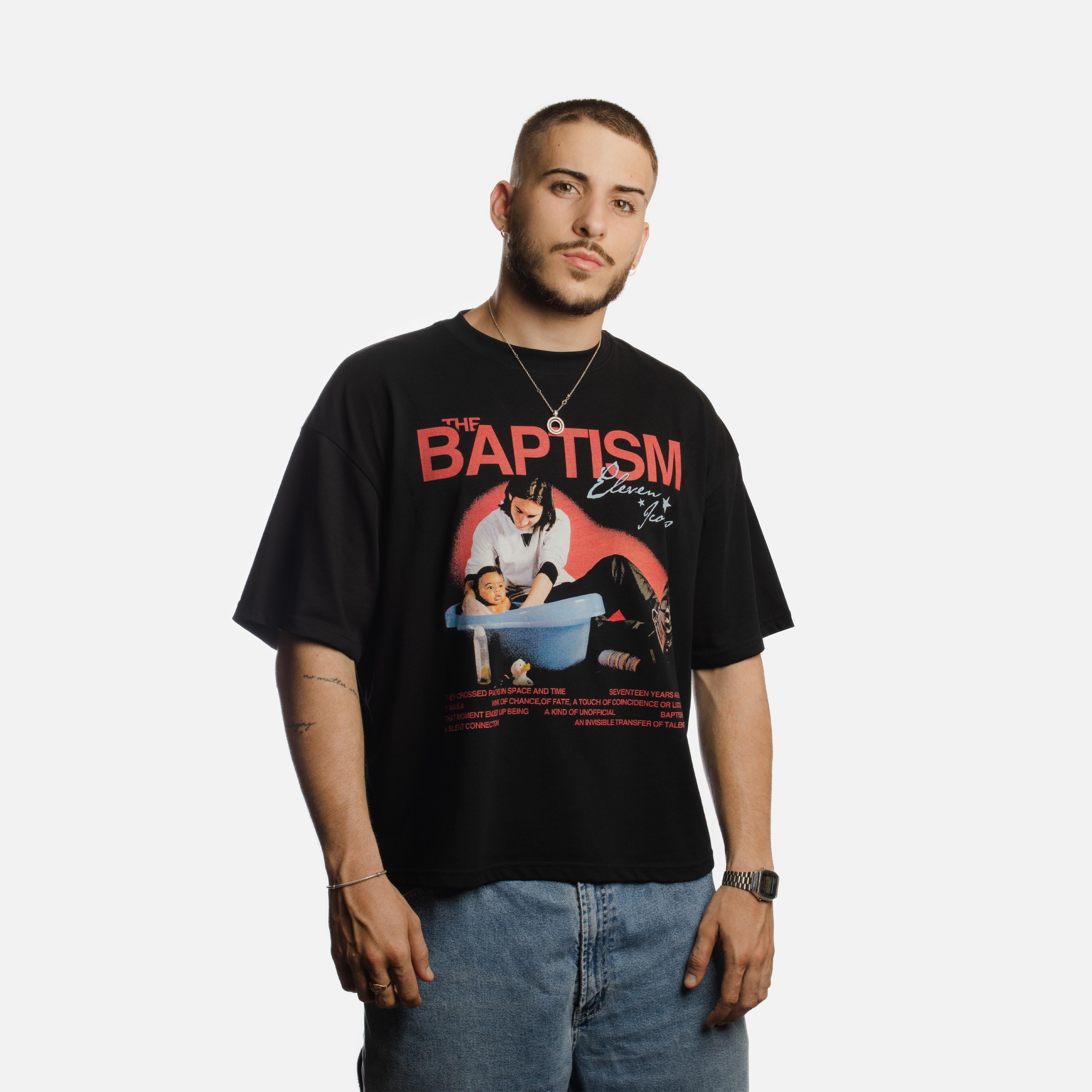 The Baptism Tee, a tribute to fate, legacy, and the symbolic transfer of talent from one generation to the next. A young Leo Messi bathes not just any child, but Lamine Yamal — now one of football’s brightest stars. Printed on a black 100% cotton tee (230 GSM) with an oversized, boxy fit — designed for comfort, style, and a story you wear.